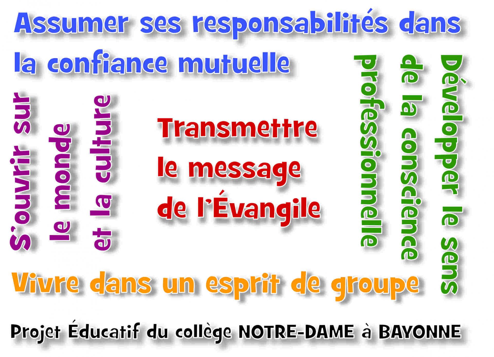 Notre collège étant catholique, chaque membre du personnel éducatif se doit de transmettre le message de l’Évangile, notamment à travers sa matière, et de l’appliquer afin que chaque élève apprenne à se connaître, à se construire, à être meilleur, à découvrir la foi et/ou à la faire croître. Des temps-forts sont organisés dans le cadre de la Pastorale, dans le collège ou à l’extérieur. Chaque élève est invité à y participer pleinement.
